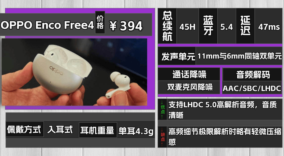 推荐产品8、O PPO E nco Free4蓝牙耳机