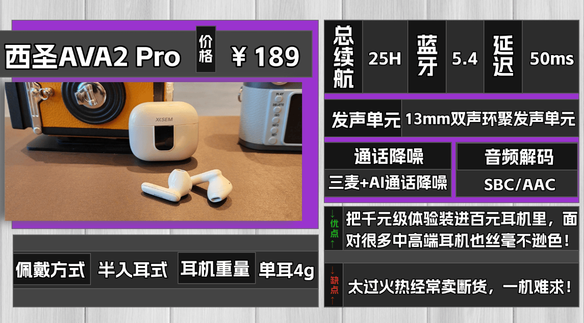 推荐产品1、西圣AVA2 Pro蓝牙耳机(价格:189元)