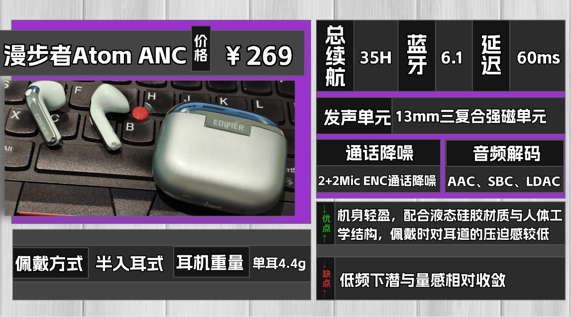 √这款在拥有多种颜色可以选择,能够满足不同人的需求。这款耳机在降噪策略上更偏向中低频有效区间,对地铁车厢里的持续低频嗡鸣有较明显削弱。音质部分采用同轴三单元结构(11mm镀钛动圈+双压电陶瓷),默认调音偏暖、耐听,低频量感充足但不浑浊,下潜有弹性;中频人声密度较高,齿音控制克制,在人声贴近感与情绪渲染上略偏理性;高频延展顺滑,不走刺激路线,更强调舒适与稳定。