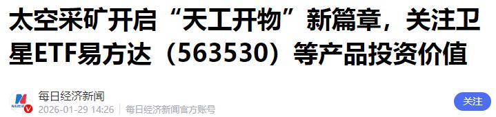 太空采矿开启“天工开物”新篇章,关注卫星ETF易方达(563530)等产品投资价值