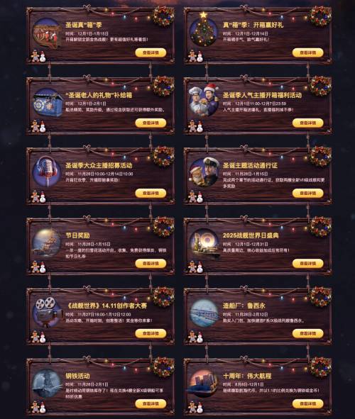 随着年末的临近,节日氛围也越来越浓,除了圣诞节,紧接着跨年也要来啦!舰长们辛苦忙活了一整年,还不趁着这次活动开开箱子助助兴,不仅能在热闹的节日中犒赏自己,还能满载而归,早日实现自己的“船齐霸业”,这波属实是赚到了,还等什么,快上线冲一波吧!