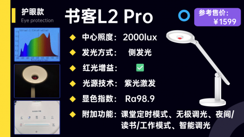 四、最后总结1、书客 L2 Pro:中高端护眼首选,适合注重视力健康的家庭参考定位:中高端专业护眼款