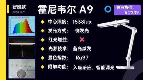 霍尼韦尔A9继承了品牌在科技领域的基因,融入多项智能感应与调光技术,主打科技感与智能化体验。