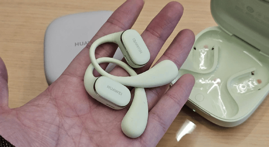 作为华为旗下首款开放式耳挂耳机,FreeArc在佩戴体验方面表现优异。其机身采用符合人体工学的曲线造型,能够轻柔贴合耳部,确保佩戴稳固不易滑落。这种近耳不入耳的设计兼顾了良好透气性与轻量化特性,搭配超柔液态硅胶材质,触感亲肤,长时间佩戴依然保持舒适。