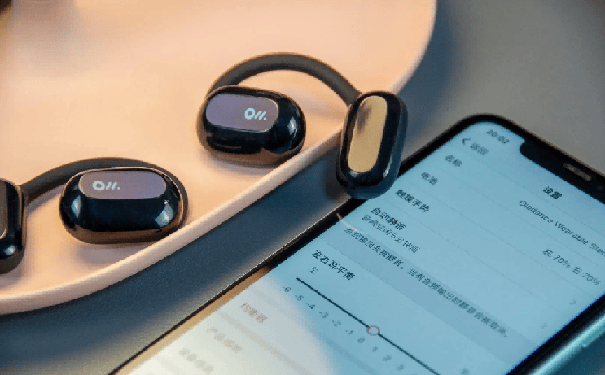 Oladance OWS2的佩戴感受尤为突出,整体采用全包覆式亲肤硅胶,配合全弹力耳挂与人体工学记忆钛合金支架,能够适配大多数耳型。这款耳机单耳重量为12.8克,相比部分同类开放式耳机稍重,但在日常通勤或运动中,仍能保持稳固贴合,不易滑脱。