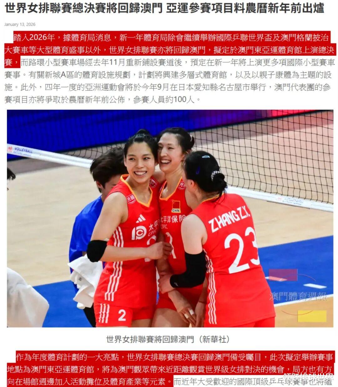 而更令人振奋的是,中国排协成功争取将2026年世界女排联赛总决赛再次拿下,由澳门主办,这不只是一次主场优势的展现,更是一次体育外交与产业布局的胜利。