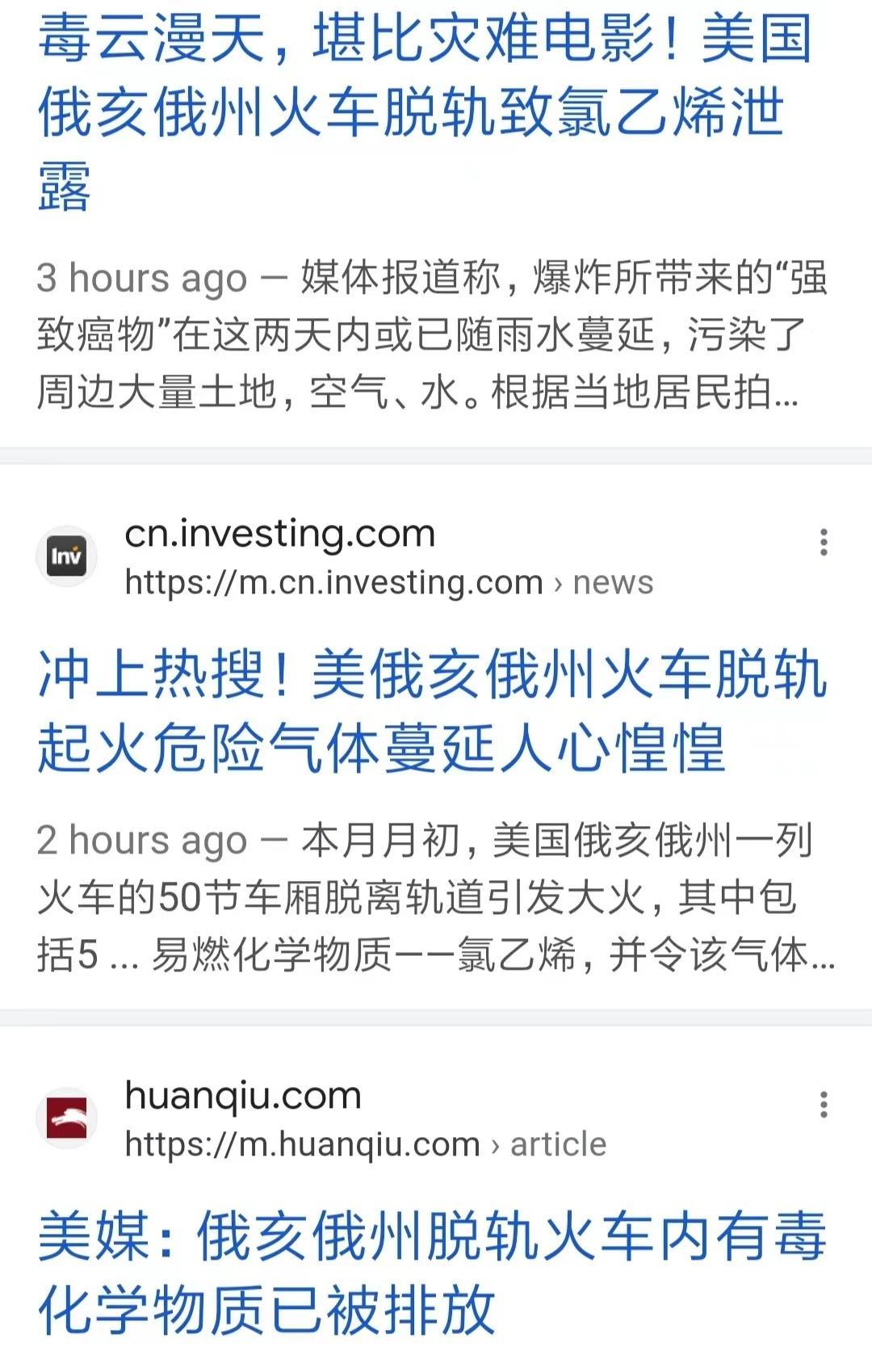 今天看到很多的自媒体人,尤其是爱国大V们都在评论一件发生在美国俄亥俄州的火车脱轨引起的化学品爆炸案,说实话乍一看绝对是心惊胆战的,配图也都是浓烟滚滚,对于事件的性质别的描述也是耸人听闻的。关联的话题有:美专家称俄亥俄州数年后或出现大批癌症患者;俄亥俄州已有居民出现头痛恶心症状;美俄亥俄州大量动物突然死亡等等,甚至都有些个的大V开始预测这是切尔诺贝利2.0版了,吓不吓人呢?