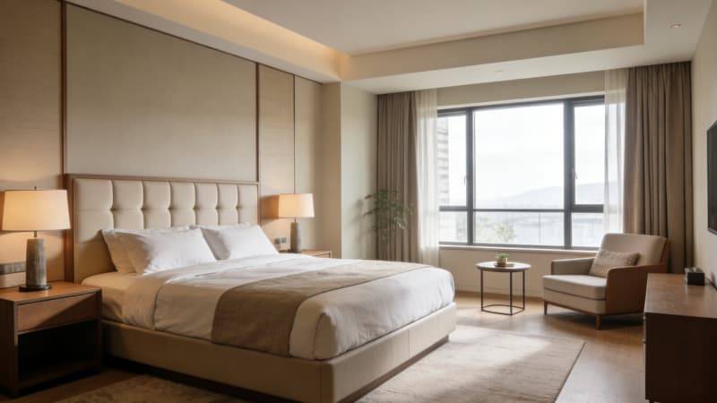 本方案专为合肥本地酒店量身打造,深度融合皖韵文化与现代设计美学,覆盖外观、大堂、走廊、双床房、两间特色大床房、卫生间及会议室八大核心空间。外观以简约大气的线条为基础,嵌入徽派建筑标志性的马头墙元素与落地玻璃,实现采光与地域辨识度的双重提升。大堂采用挑高设计,搭配浅灰石材地面与原木装饰,前台背景墙融入巢湖风光元素,营造开阔舒适的接待氛围。客房分区明确,大床房1侧重温馨静谧,搭配暖光照明与定制软装;大床房2主打商务简约,增设多功能办公区;双床房注重空间利用率,保障宾客隐私。卫生间采用干湿分离设计,搭配防雾镜与智能卫浴设备,提升便捷性。会议室配备高清投影与专业声学系统,可满足商务洽谈、小型发布会等多元需求。整体设计兼顾美观性与实用性,既契合合肥文旅发展趋势,又能精准匹配商务、旅游等不同客群需求,助力酒店提升核心竞争力。