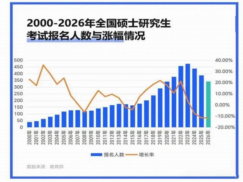 朋友们,你们发现没?最近考研的热度,简直像南方冬天的蚊子,肉眼可见地变少了!2026年报名人数跌到343万,比上一年又少了45万,三年累计“蒸发”了131万考生。说好的“卷王之王”火热之路,怎么突然就凉起来了?是年轻人顿悟了,还是被现实“揍”醒了?今天咱们就来聊聊,这届年轻人为什么对考研“不感冒”了呢?归纳起来,原因如下: