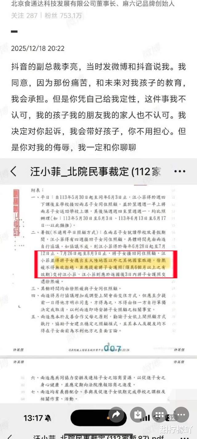 这次汪小菲称自己会照顾好孩子,但表示会起诉抖音副总裁,或许是觉得对方对自己的评价有失公正。