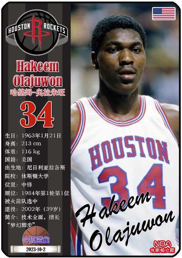 效力17年-哈基姆-奥拉朱旺(休斯顿火箭1984-2001)