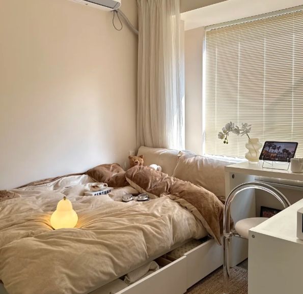 你可以从客厅一个安静的角落开始实践。一把包裹着灯芯绒面料的单人椅,颜色是烤得恰到好处的肉桂卷色,旁边立一盏落地灯,灯罩选用米白色的纸或布。夜晚只开这一盏灯,光线被灯罩拢成一小团光晕,刚好照亮你膝头的书页和手边冒着热气的马克杯。这个角落仿佛自成一体,像一个发着暖光的小岛。