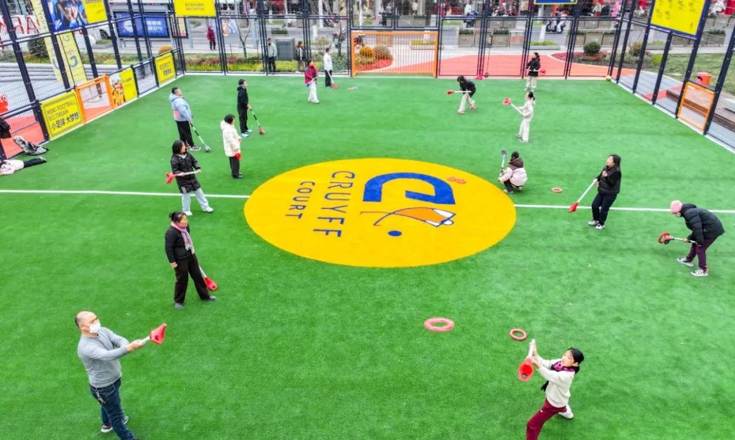 张浦的公园规模更大些,位于镇政府东侧的核心地段。除了标志性的克鲁伊夫球场,还配备了篮球场、健身区和便民服务站。开园时举办的六人制足球赛和荷兰软式飞环体验,也直接传递了它的定位:不止于传统运动,更想带来新鲜、好玩的全球化运动体验。