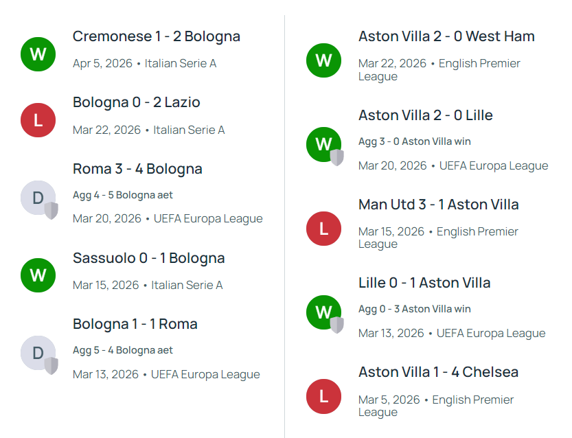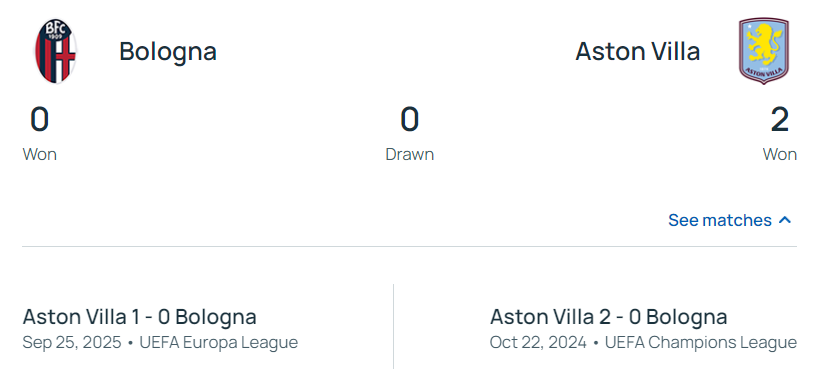 不过两队历史交锋中,维拉的优势均建立在主场之上。此前两次欧战交手,维拉均在主场取胜,2024年欧冠小组赛2-0、2025年欧联杯小组赛1-0,两战全胜且零封对手,心理层面占据上风。但本场是博洛尼亚首次在主场迎战维拉,过往交锋的场地优势不复存在,维拉客场作战的适配性与稳定性将面临考验。反观博洛尼亚,虽无交锋优势,但本赛季欧战主场从未输球,具备以弱抗强的潜力。