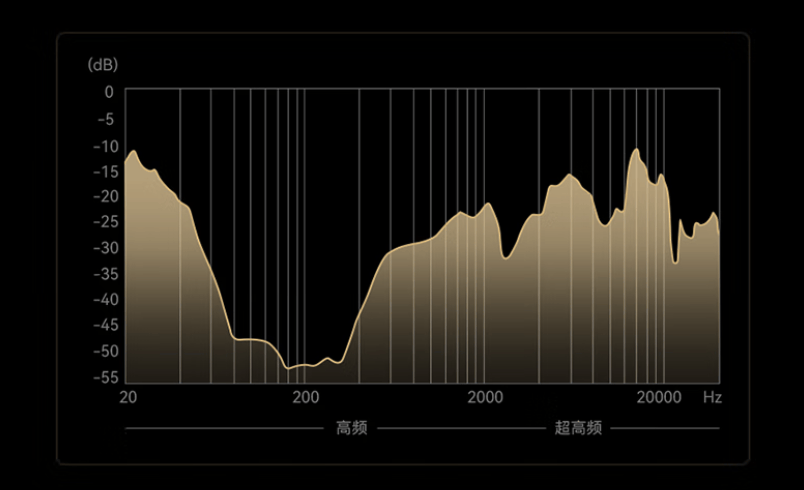 在声音表现上,耳机搭载了定制振膜和独立声学腔体,调音由金耳朵实验室参与。低频量感充足,下潜和弹性都不错,中频人声自然耐听。高频部分偏柔和,细节没有特别突出,整体风格比较保守,更适合喜欢流行乐、轻音乐的用户,长时间听也不会觉得刺耳。