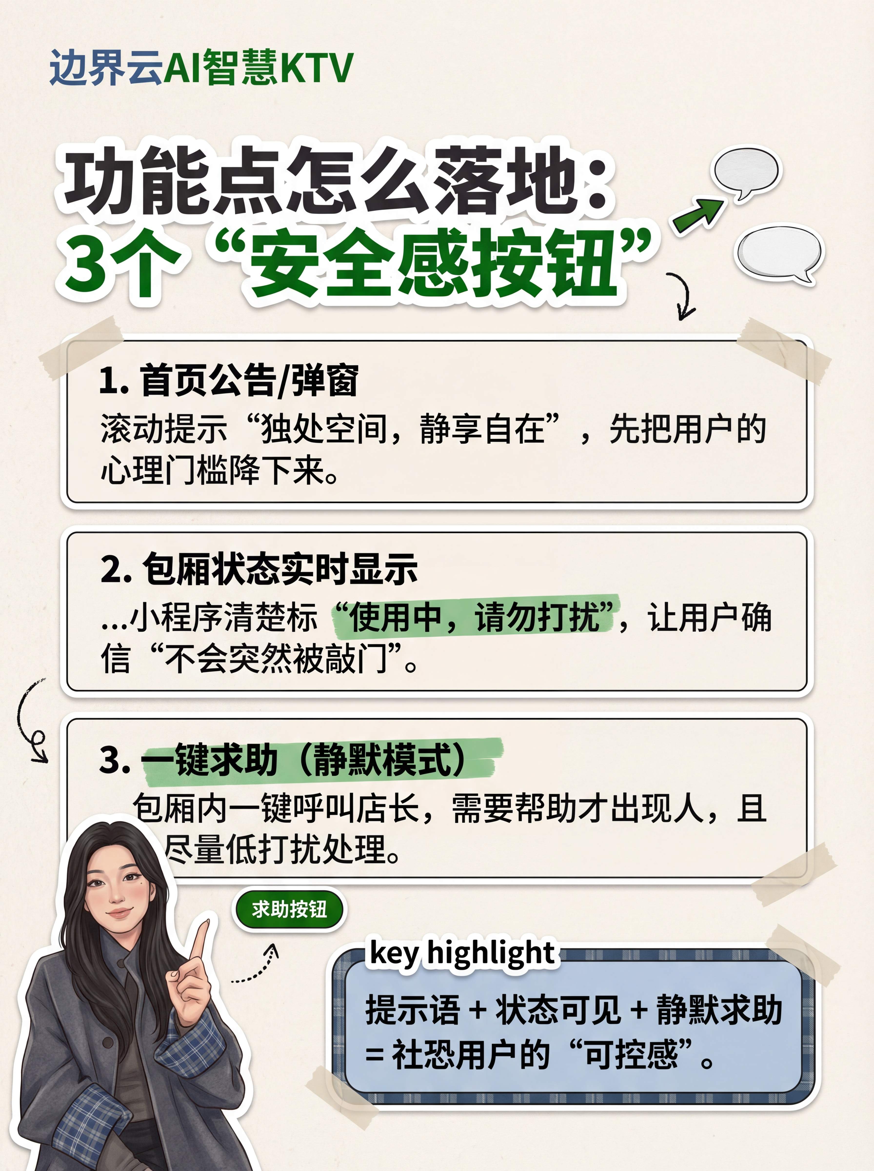 💡 视角转换产品视角:核心KPI从"包厢周转率"部分转向"用户心理安全评分"。每一个功能点都需要通过"社恐滤镜"来审视:它会增加疑虑,还是打消疑虑?