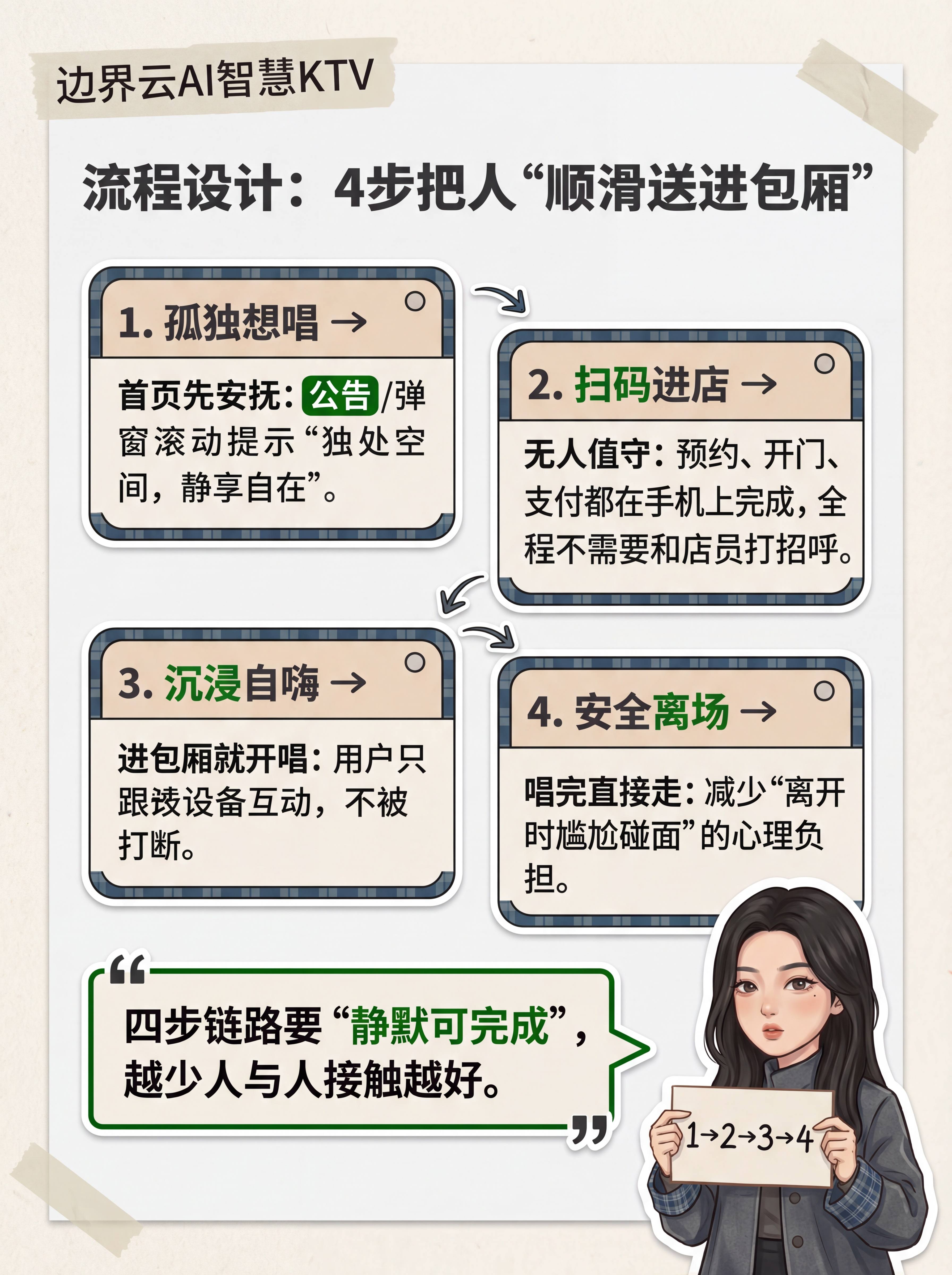 线上预安抚:在用户接触实体空间前,通过线上界面传递"独处友好"的明确信息,完成心理建设。