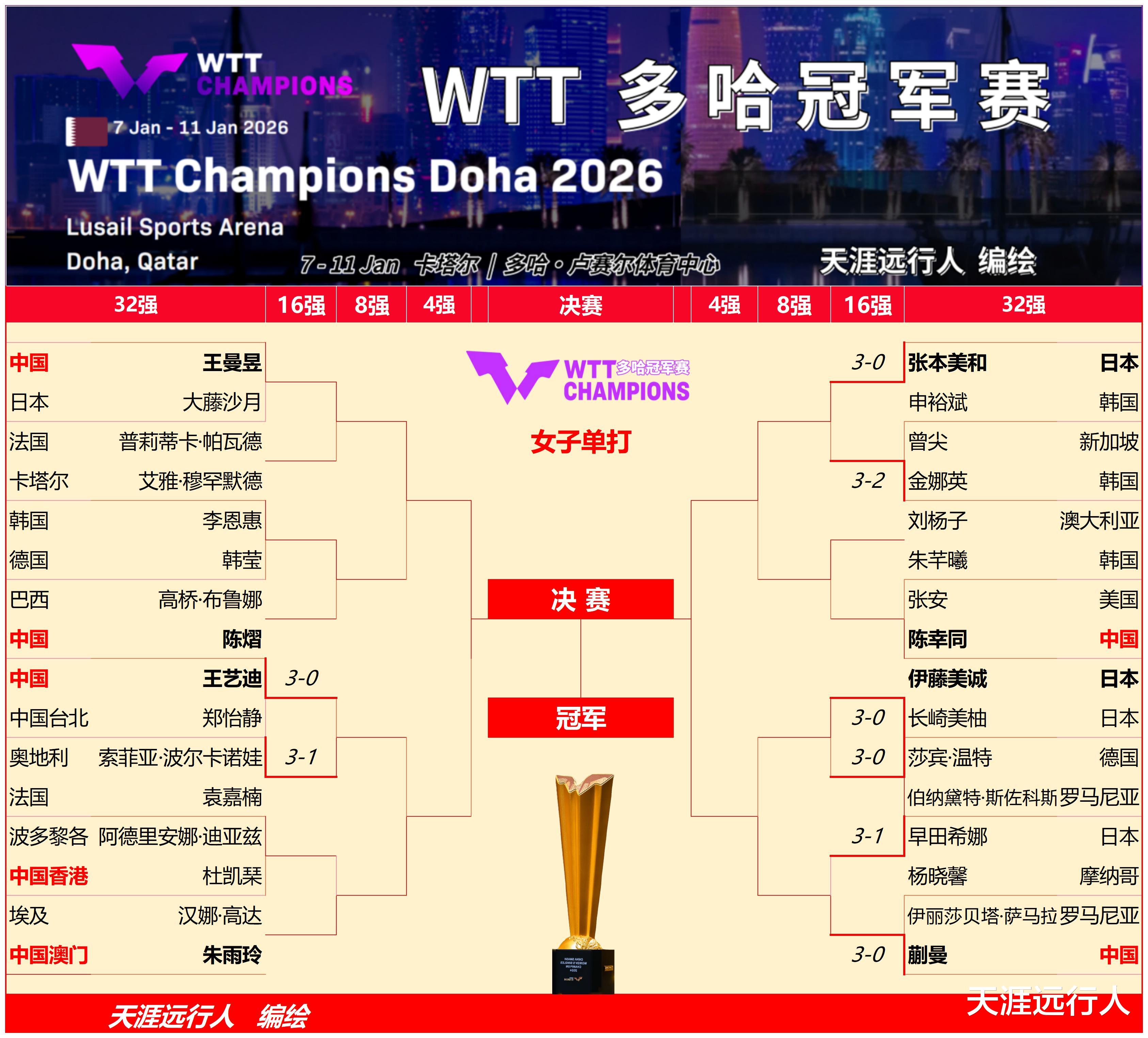 WTT冠军赛多哈站丨女单1/16决赛首日战报