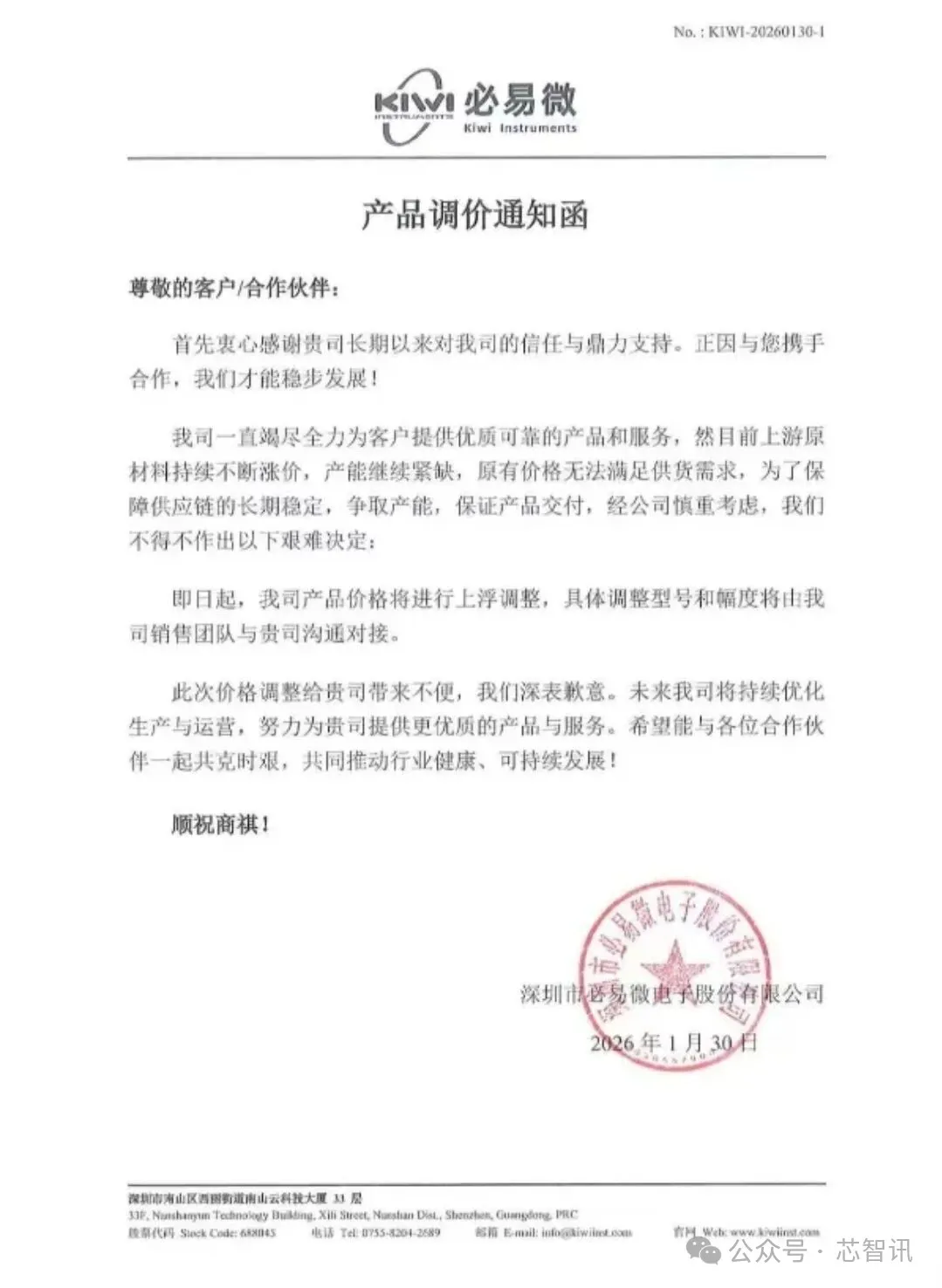 美芯晟强调,“此次价格调整实属行业大环境下的必要举措,若给贵司的经营规划带来不便,我们深表歉意。未来,我司将继续深耕生产工艺优化、提升运营效率,竭尽所能控制成本,始终以高品质的产品和更贴心的服务回馈各位合作伙伴,力求将价格调整带来的影响降至最低。”