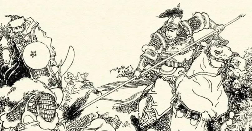 其兄弟耶律不差、耶律不弱猛冲过来,要给哥哥报仇,杨三郎一看,便丢下辽兵,举起手中的三郎金枪,飞马过来将他们拦住。