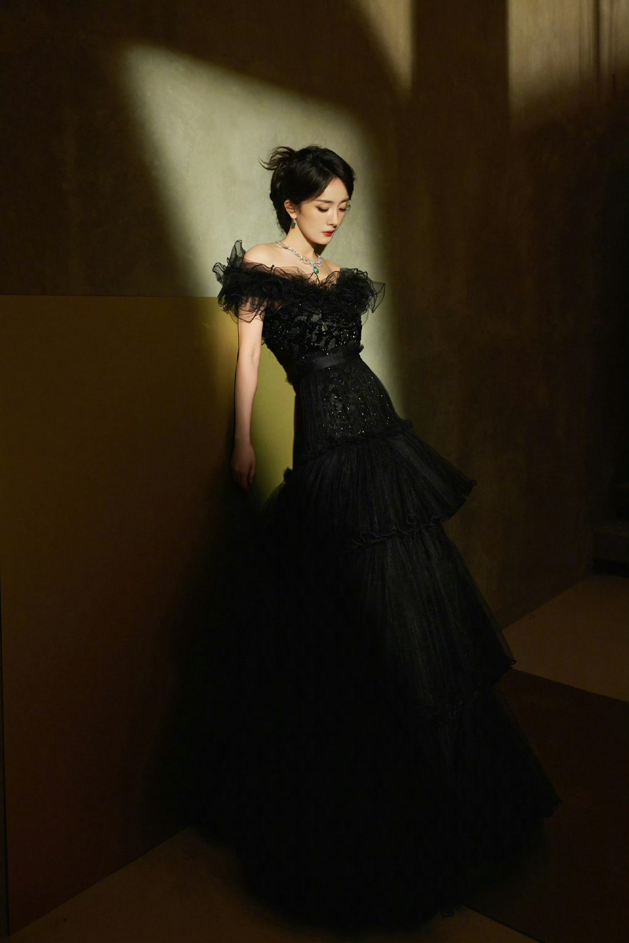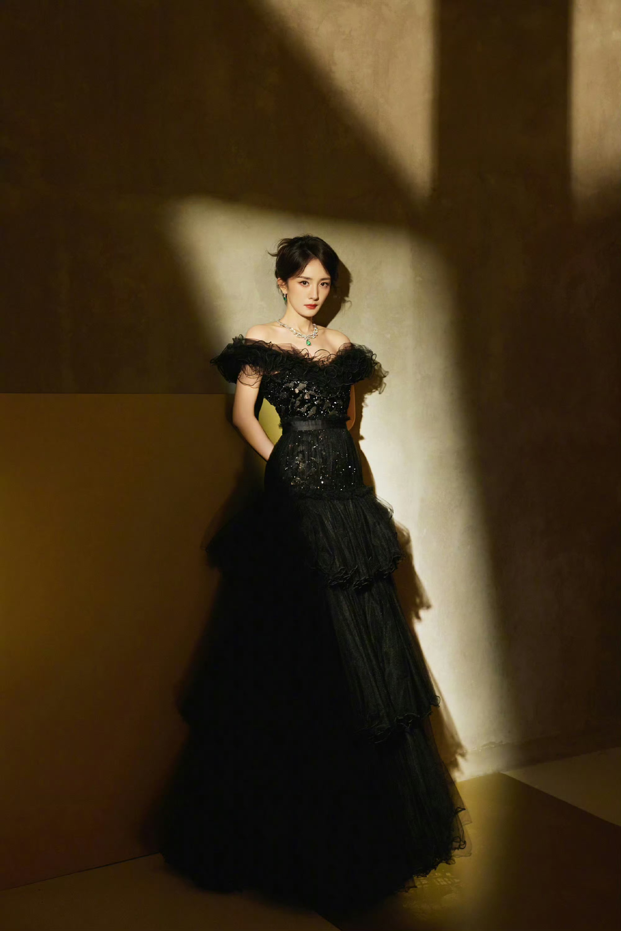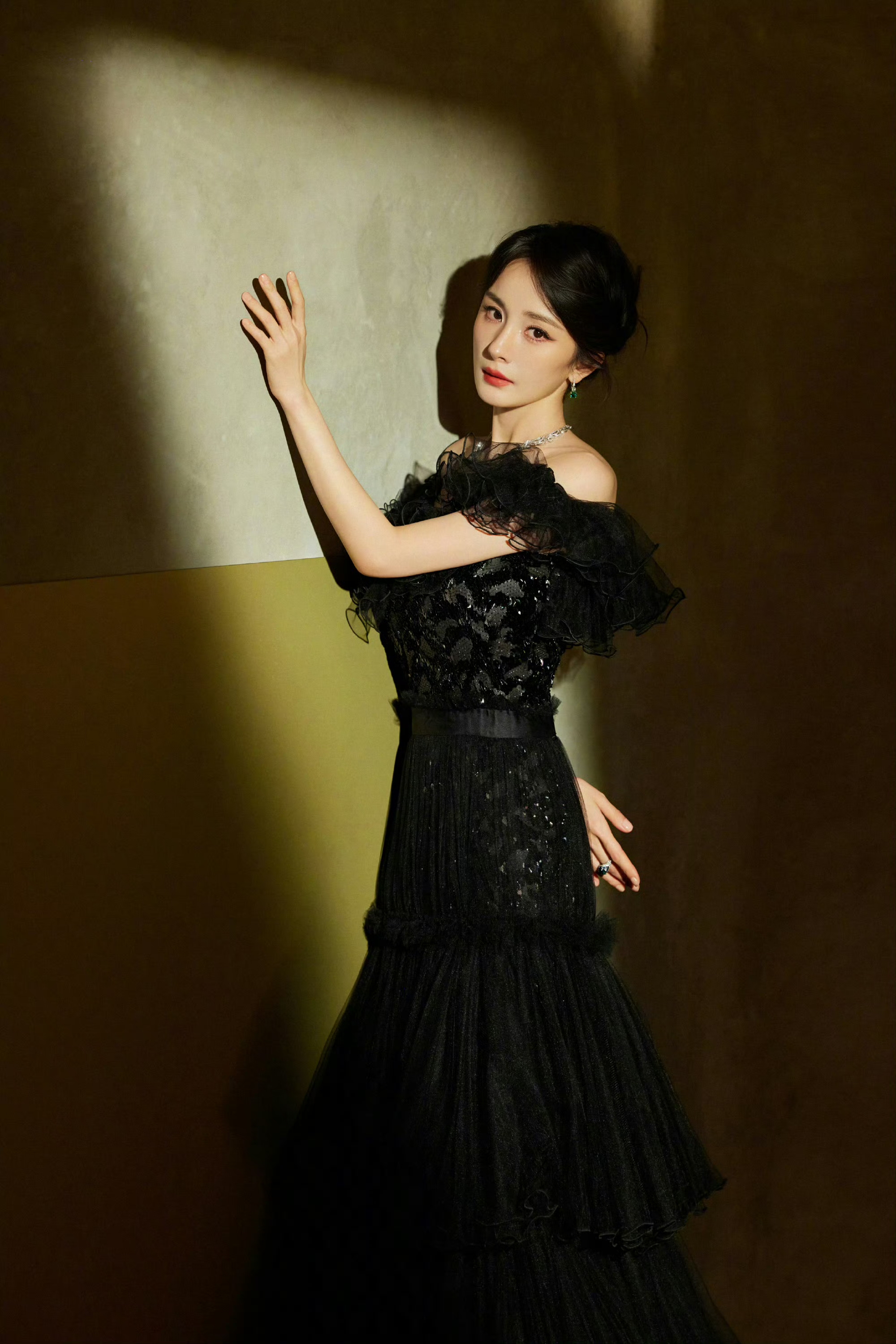 杨幂纯黑抹胸礼裙