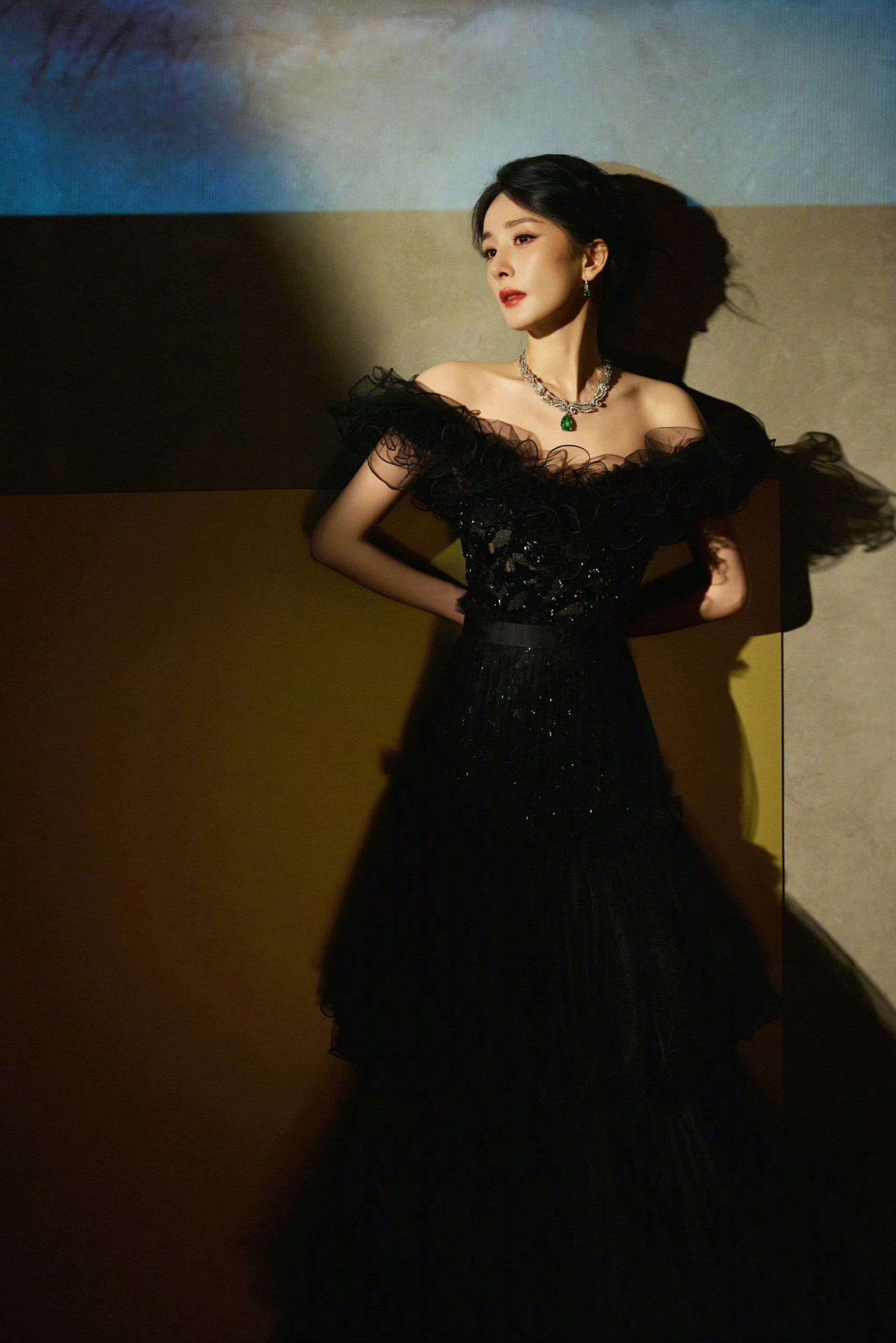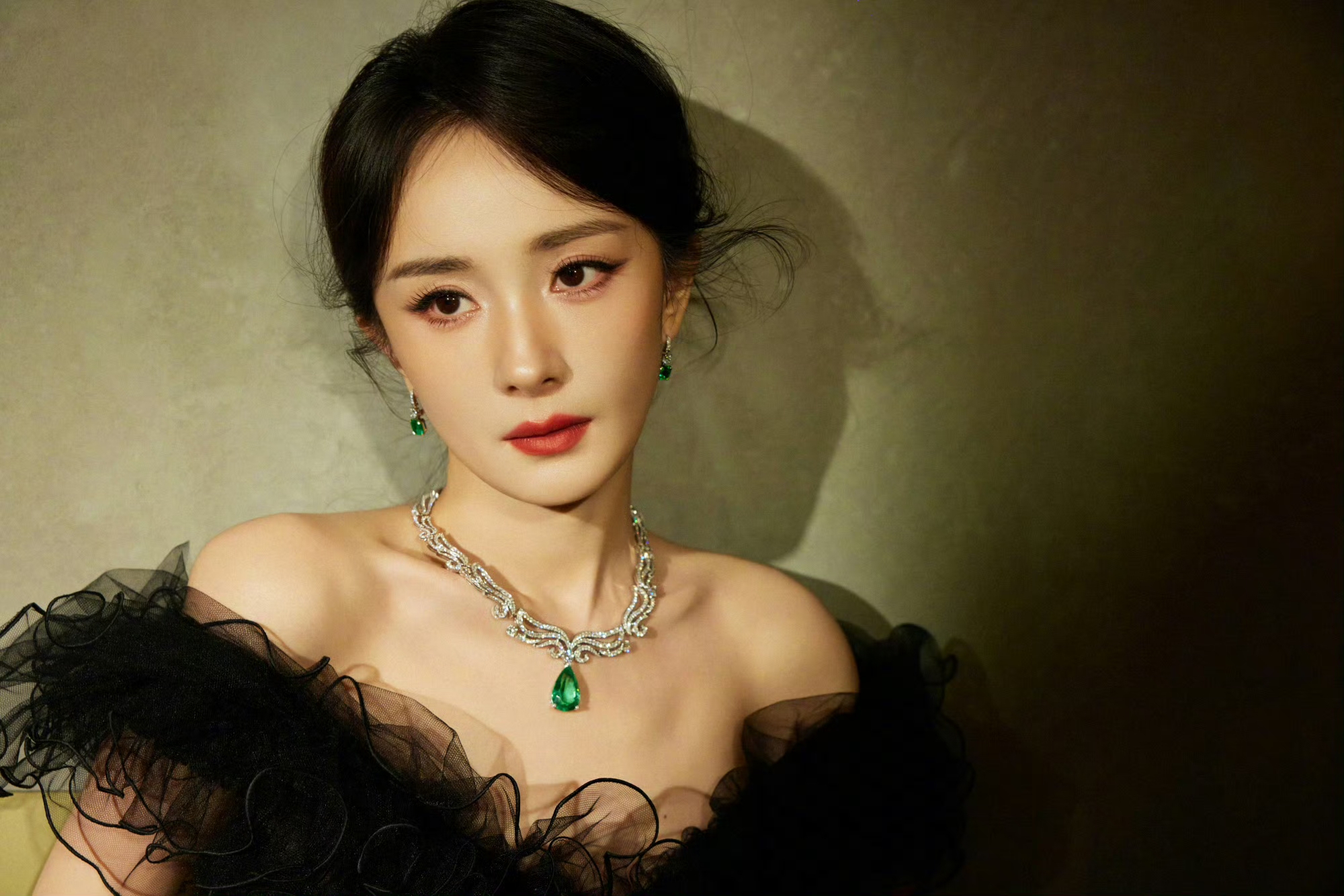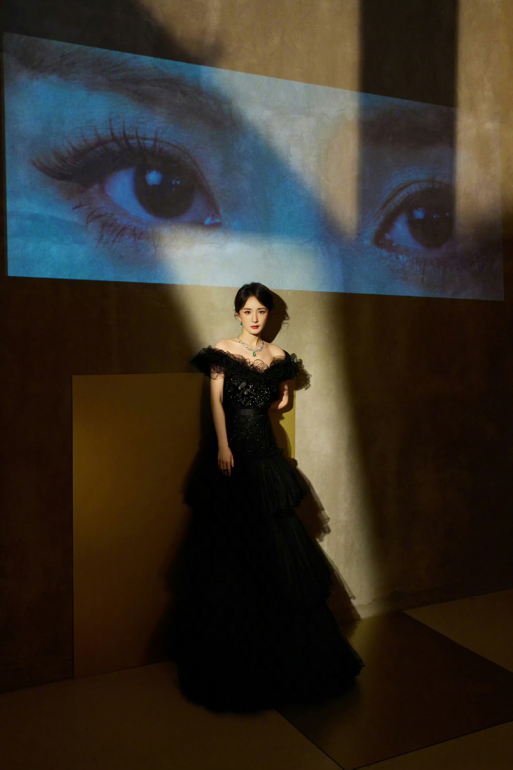 杨幂纯黑抹胸礼裙