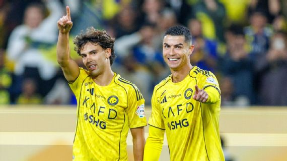 凭借本场的两粒进球,C罗以12球与队友(同为葡萄牙前锋)若昂·菲利克斯并列沙特联赛射手榜榜首。不过,C罗仍在等待一个久违的“帽子戏法”——他上一次单场打进三球,还要追溯到2024年5月4日对阵阿尔维达的比赛。