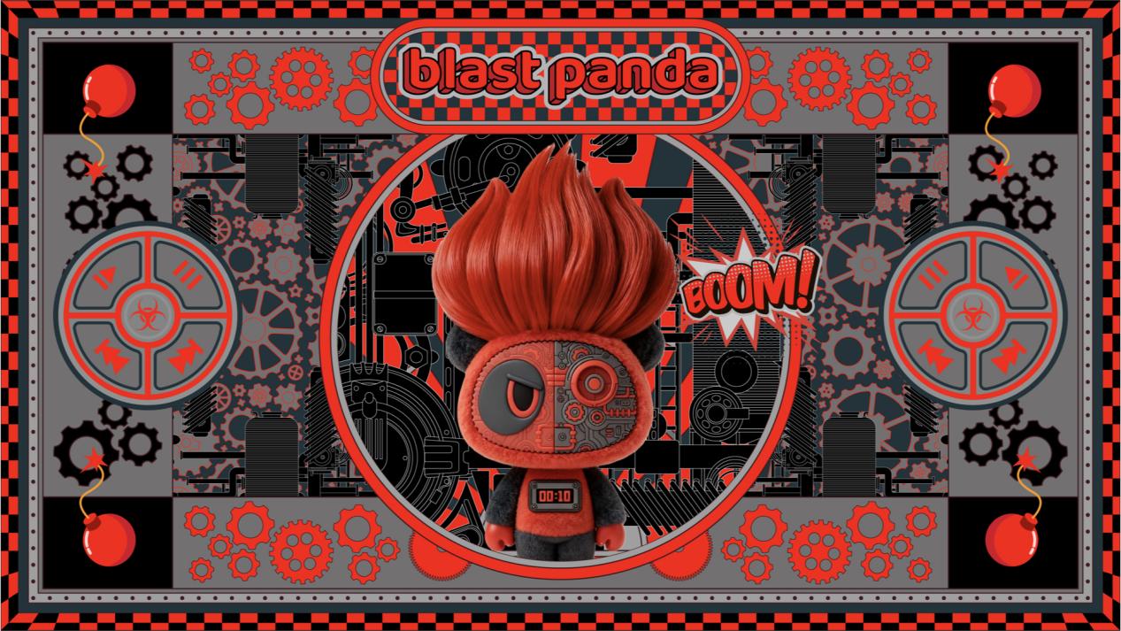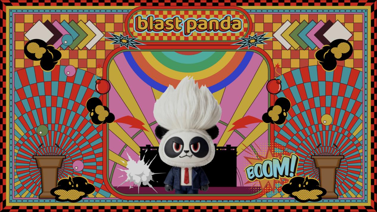 令人意外的是,这位习惯于处理千年尺度和文明命题的设计师,私下里却是个“特别爱玩儿”的人。他认为,无论多宏大的设计,其核心都是沟通。而潮玩,这种诞生于消费时代的小物件,是另一种极其直接的情感对话媒介。于是,“暴炸熊猫”应运而生。它彻底抛弃了熊猫传统的可爱范式,以“怪咖”姿态登场:脾气暴躁、毒舌、随身携带“爆炸物”。王成福为它设定了荒诞又带点哲学意味的背景:只有在爆炸的缝隙中,才能穿越时空。