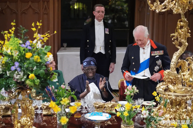 这场为尼日利亚总统夫妇举办的国宴,落地于温莎城堡的圣乔治大厅,可容纳 160 位宾客落座。值得一提的是,这间大厅正是 2018 年哈里王子与梅根婚礼后,举办婚宴招待会的场地。