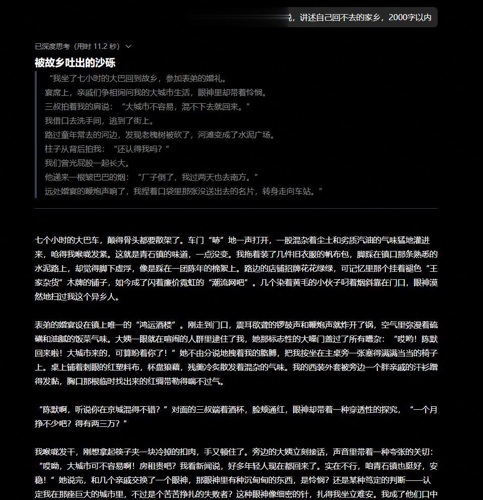 但是还是会有中文大模型的堆砌词藻空洞的问题,很多句子看着很华丽,但是其实比较的空,不包含任何信息量。