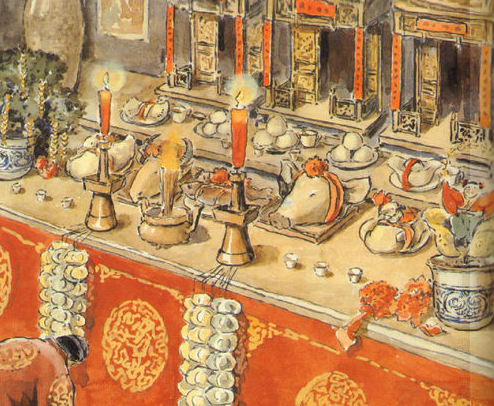 祭财神一定要摆好的祭品,这样才显得心诚。普通百姓就摆上点心水果就可以了。而有钱的人家,特别是做生意的人家,就很讲究了。祭财时通常用五大供:整猪、整羊、整鸡、整鸭、还有红色的活鲤鱼,这主要是表示吉庆有余的寓意。