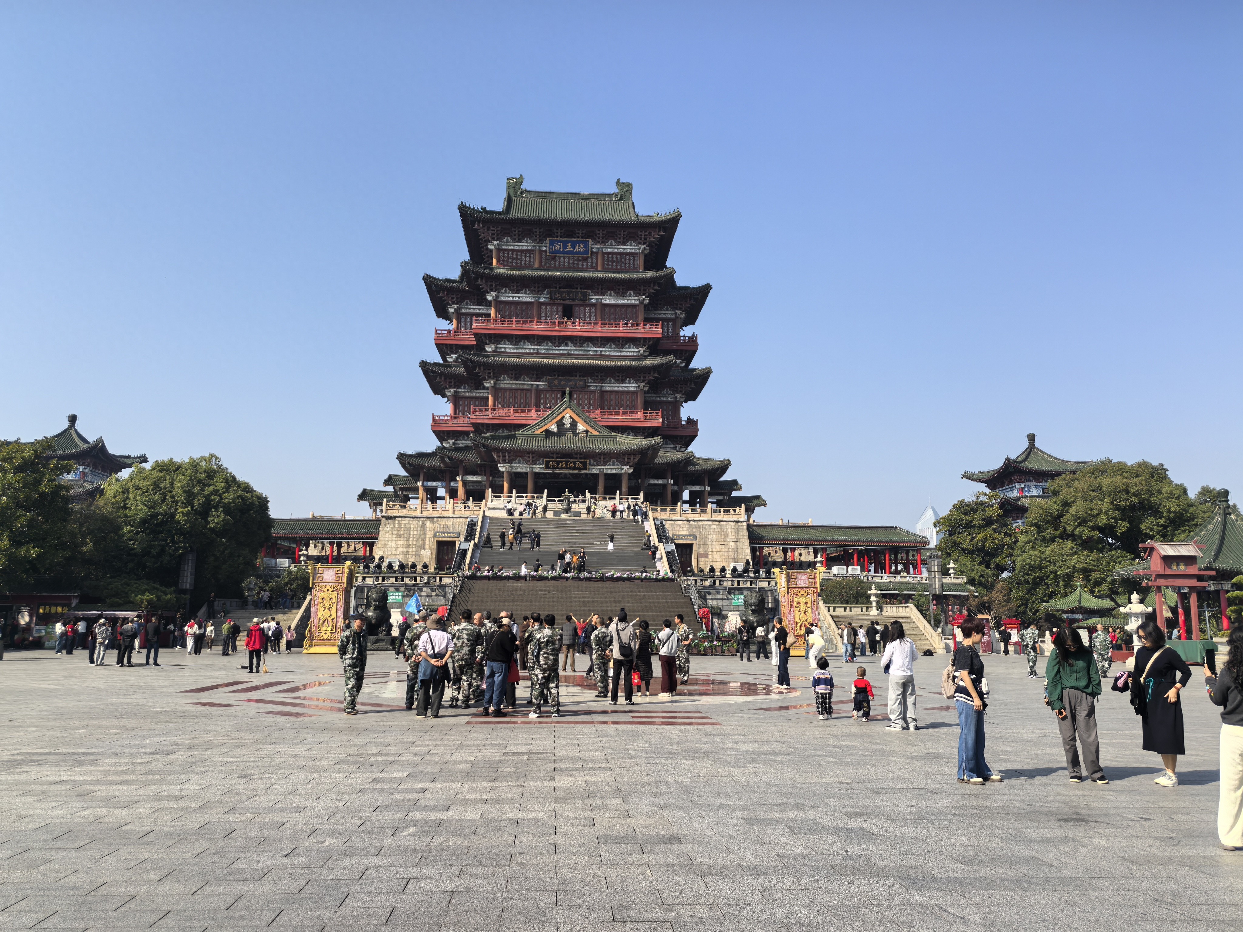 滕王阁,江南三楼之一,位于江西南昌赣江边上,坐西向东,倚城临江,为李世民最小弟弟滕王李元婴在公元653年所建。滕王阁以王勃的滕王阁序闻名天下,楼以文名,从唐朝到现在1300多年,毁于战火或自然灾害28多次,重建29次,最后一次重建是上世纪80年代,足见中华文明韧性之强,生生不息。我们看到的滕王阁参考了梁思成的设计,以宋代滕王阁为蓝本,在1989年重建完毕。现在为5A级景区,江西南昌著名旅游胜地。