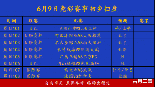 6/9周日2串1预测:日联杯大阪樱花,国际赛意大利解析(附扫盘)