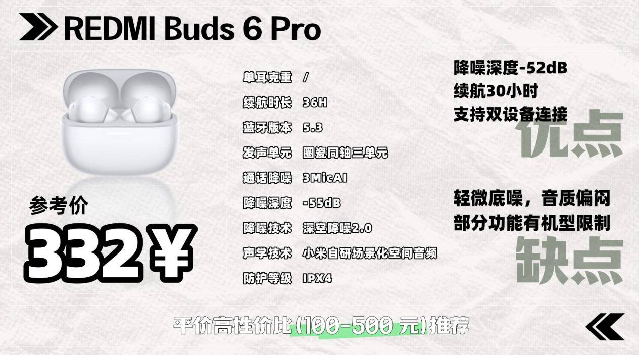 价格:199 | 延迟:49ms | 单耳克重:4g | 降噪深度:-52DB