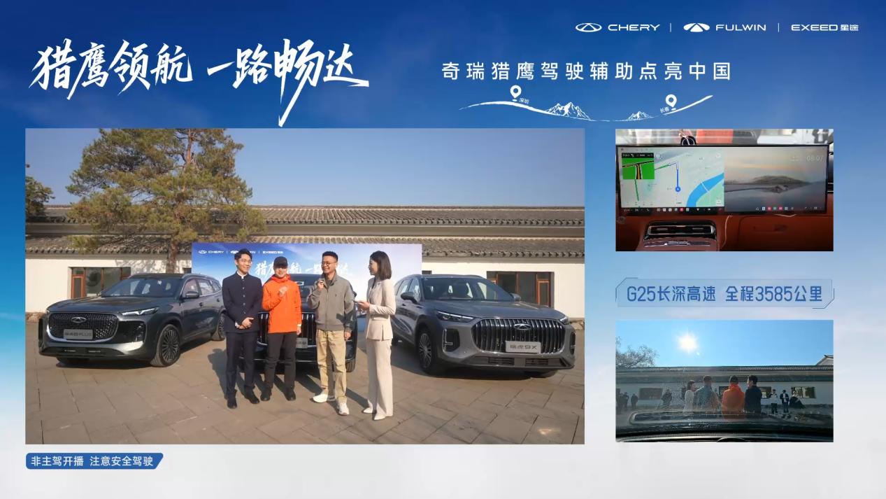 3月31日,“猎鹰领航 一路畅达,奇瑞猎鹰驾驶辅助点亮中国-G25长深高速瑞虎段”大型直播长测活动圆满收官。全新一代瑞虎9、瑞虎8 PLUS、瑞虎9X三款车型组成接力车队,从长春出发,途经阜新、承德,最终抵达天津,全程约1100公里,以全场景验证奇瑞猎鹰驾驶辅助系统的稳定可靠,最终实测1100公里零接管,全面展现中国新燃油车型的智能化实力。