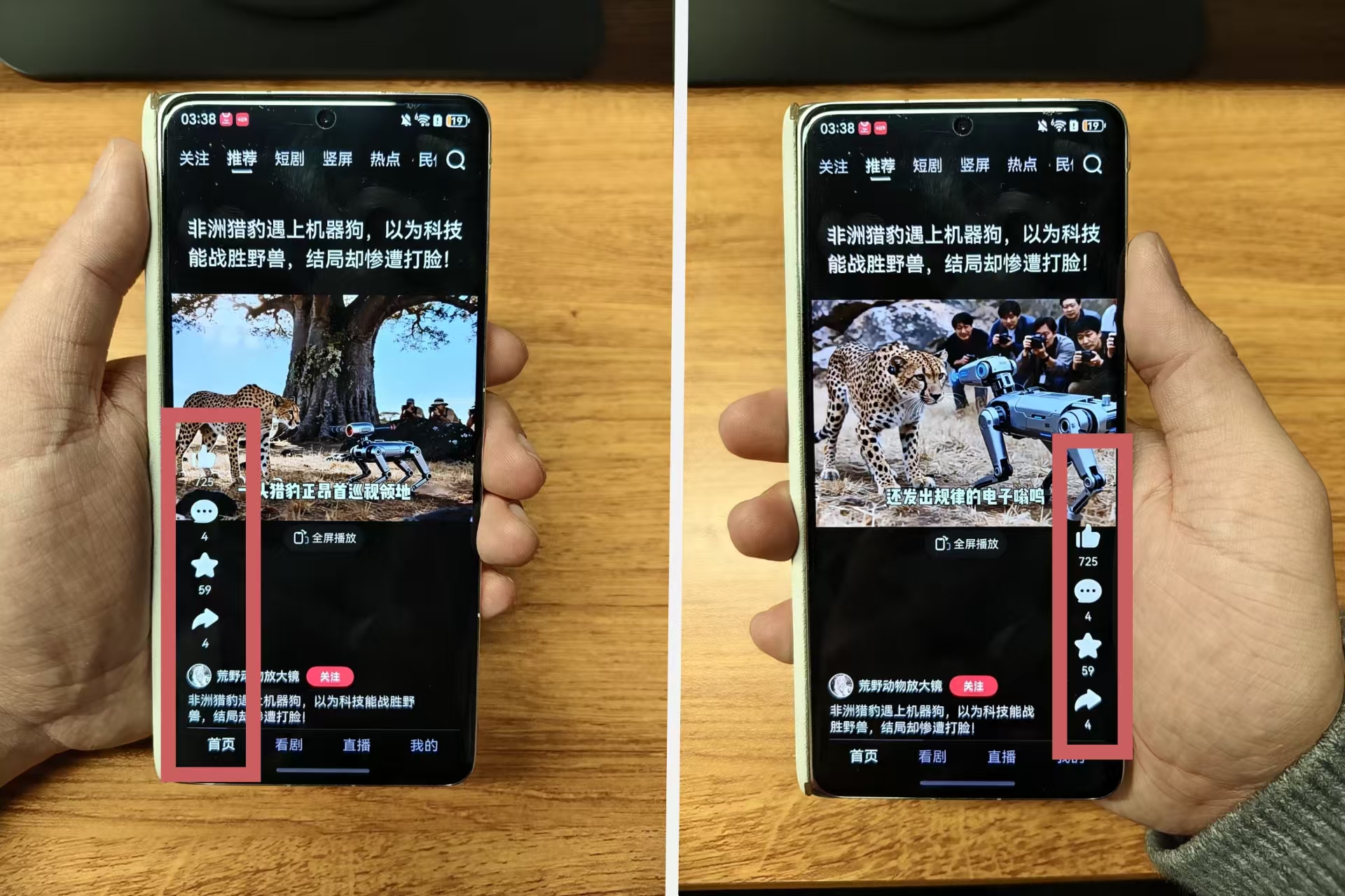 除了核心的接电场景,智感握姿也适配了鸿蒙版好看视频、IT之家这类日常刷视频、看资讯的常用鸿蒙应用,点赞、评论、回帖这类高频操作的按钮,都会跟着握持姿势调整位置,便单、桔子账本、像素匠等部分小众鸿蒙应用也完成了适配,让单手操作的便捷性覆盖到更多日常使用场景。