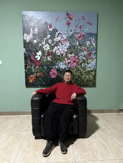 从东北乡村走出的他,一生都带着土地赋予的质朴与温暖。童年院落里的阳光、花开、老屋,成为他艺术最初的灵感,也成为他一生不变的精神原乡。他始终坚信:艺术从自然中来,到自然中去。无论走得多远、成就多高,他的笔墨始终贴着大地、连着生活、系着人民。这种不忘来路、不忘故土的赤子情怀,让他的画有根、有魂、有温度,也让他的精神世界始终清澈而坚定。