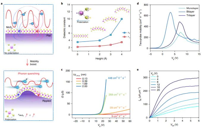 图3研究了2介电常数(ε)对电学性能的影响2f-MoS,展示了晶格畸变导致的极化增强和ε值增加。