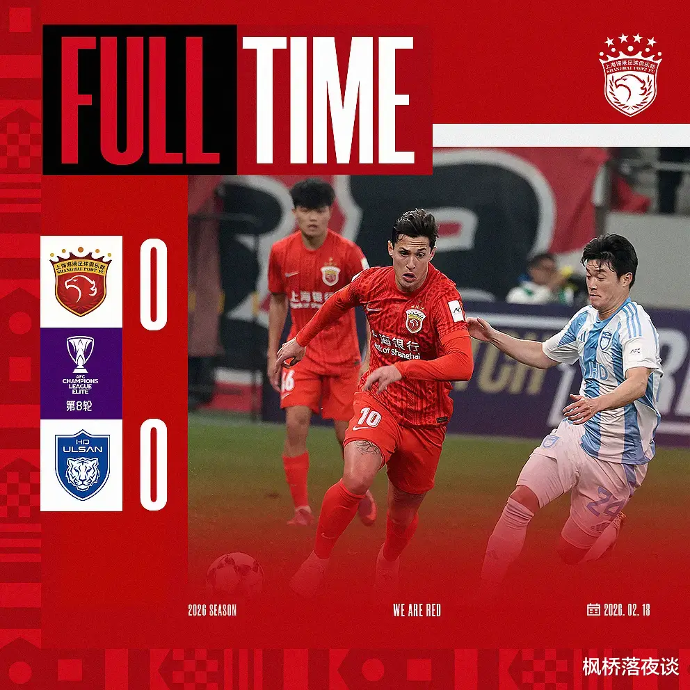当终场哨响,比分定格在0-0。上海海港带着8轮4分、跨赛季13场不胜的耻辱战绩,结束了本赛季的亚冠之旅。