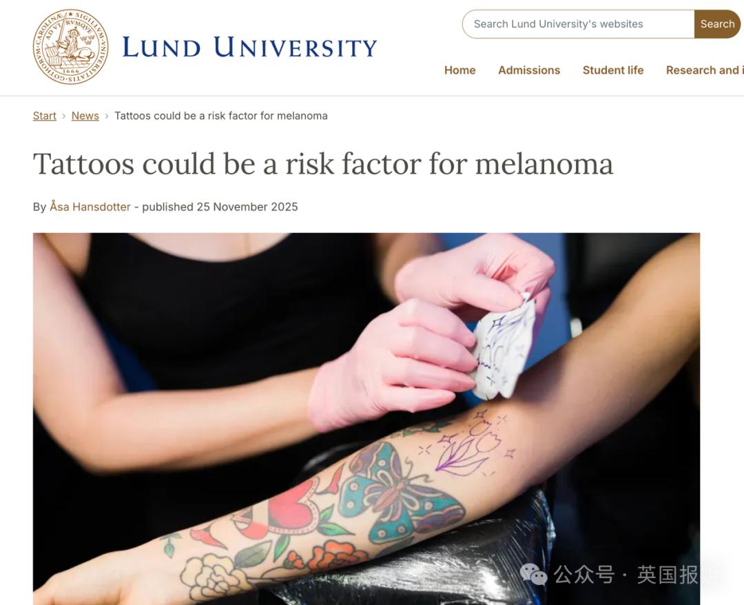 2025年瑞典隆德大学发表研究报告称,约20%的瑞典人有文身,第一次文身年龄在18岁至35岁之间,意味着他们一生都在接触文身墨水。
