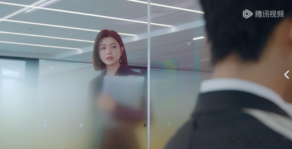 接着是会议室的隔空相望。导演的镜头由远及近,慢慢推进,从外面岑矜惊讶的神情,切换到里面里雾英俊的侧脸,这样的相遇,就让观众浮想联翩,他们之间一定有一段不寻常的过往。
