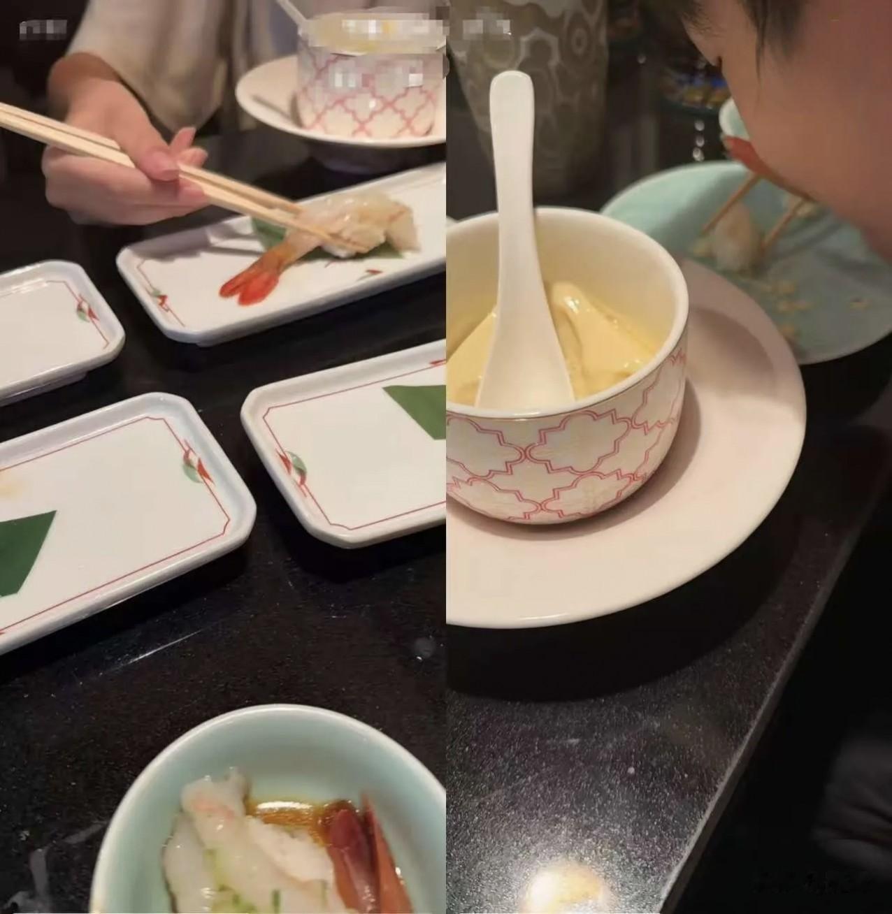 两个孩子吃的很香很开心,小箖箖一口一只大虾,汪小菲一边给孩子夹菜,一边夸他们好棒。
