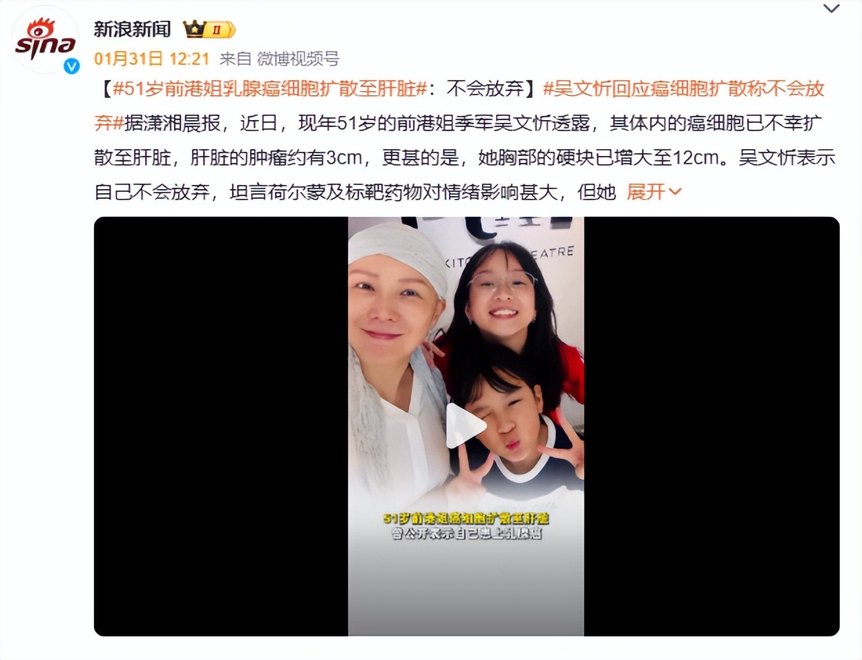 新浪新闻 2026-01-31——51岁前港姐乳腺癌细胞扩散至肝脏:不会放弃