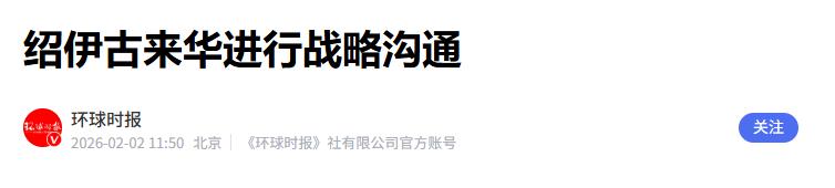 环球时报 2026-02-02——绍伊古来华进行战略沟通