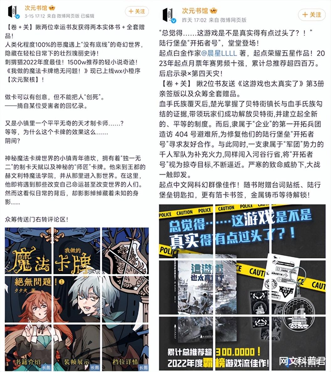 而起点白金作家晨星LL所著的《这游戏也太真实了》和刺猬猫2022年的大热作品《我做的魔法卡牌绝无问题!》目前均已上线微信小程序【次元聚核】。都是全程亲签的,有想要作者签名的读者可以去支持一下。