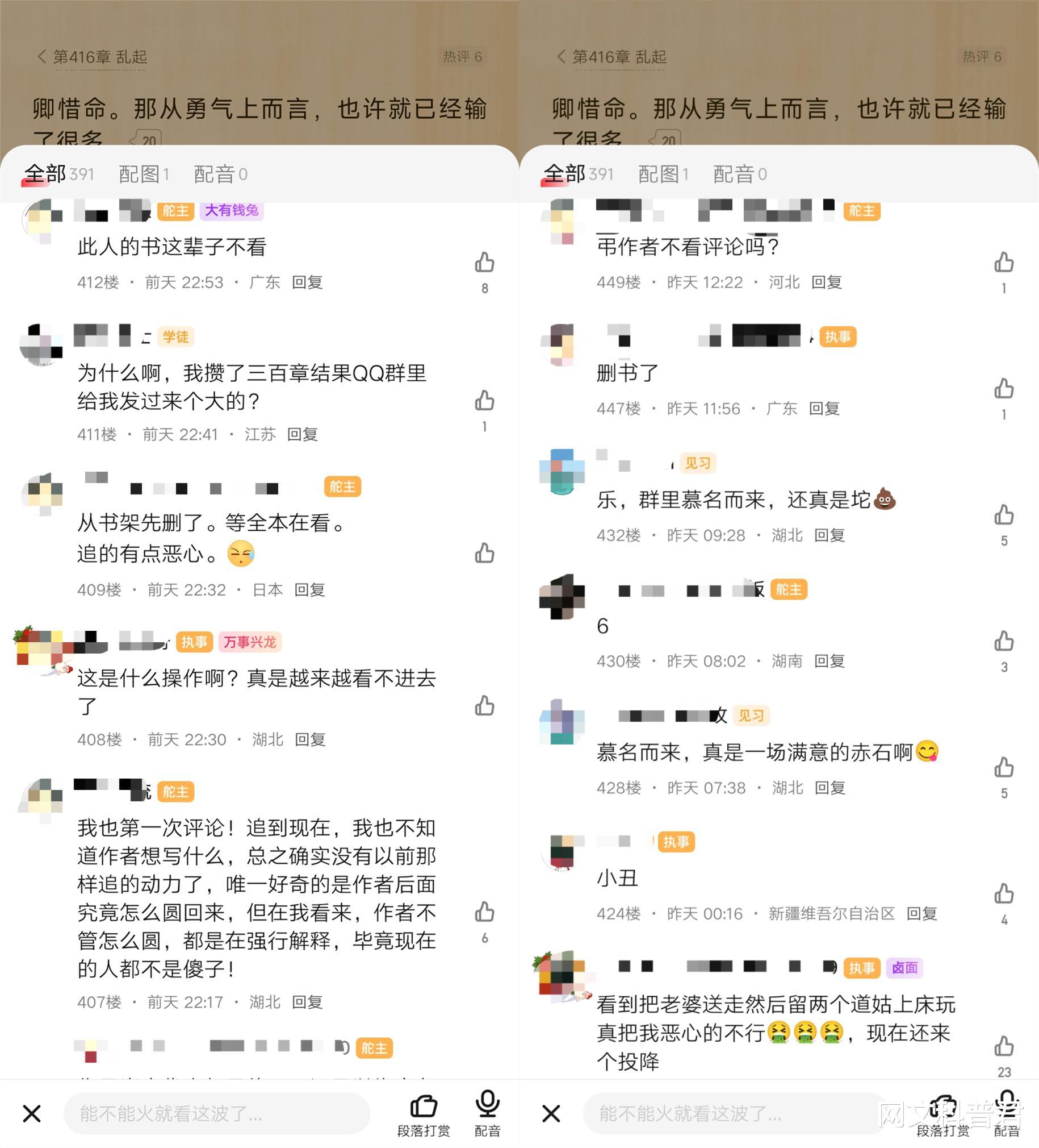 16日,作者在新章节末尾称两个书友群都被恶意举报炸了。
