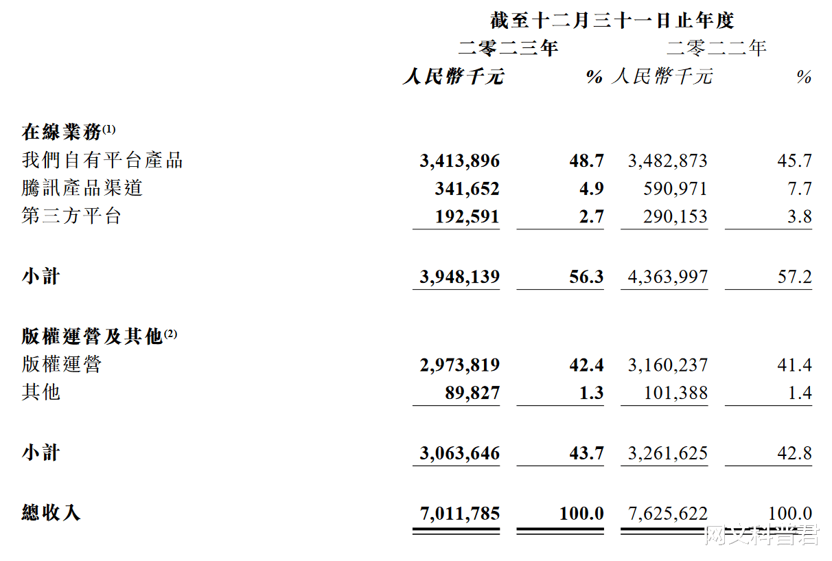 五、阅文总收入因防盗下跌6亿18日,网文行业龙头阅文集团发布2023年业绩报告。(这个分析有的人可能会比较眼熟啊,因为前两天财报刚出的时候我就在龙空分析过一遍了,估计不少关注龙空的读者都看过,现在只是把之前的分析内容搬过来)