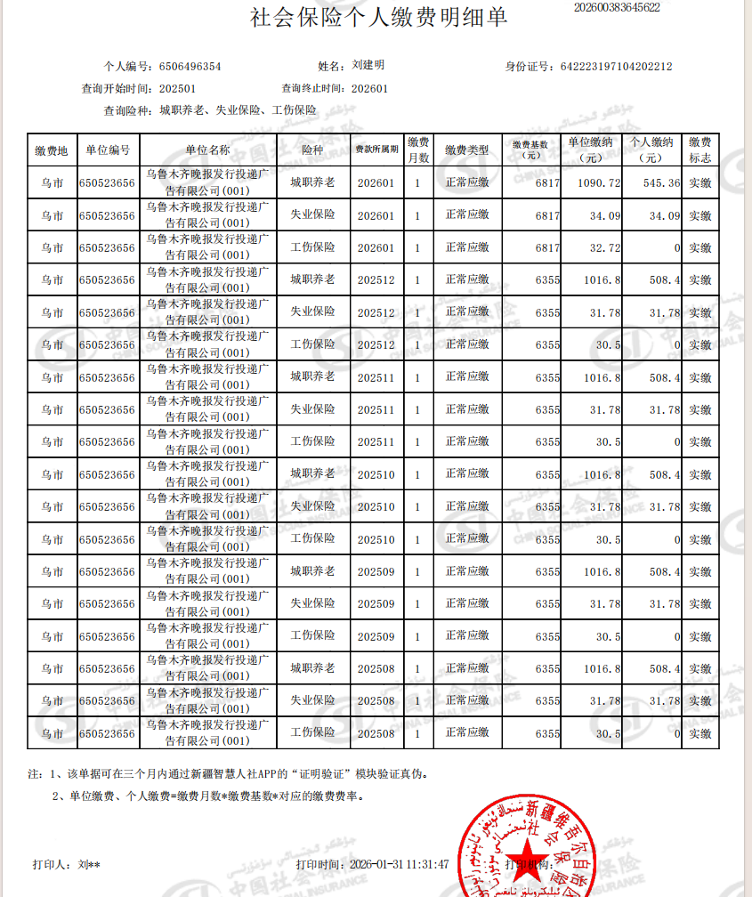 说出这句话时,刘建明(化名)的声音里充满了疲惫和无助。他曾以为,进入一家有着国企背景的单位——乌鲁木齐晚报发行投递广告有限公司,就意味着拥有了一份稳定的保障。然而,当他步入晚年,病痛缠身时,才发现自己人生中最黄金的十年,在社保记录上竟是一片空白。更让他感到绝望的是,至今他并未与单位办理离职手续,社保却被强行停缴。