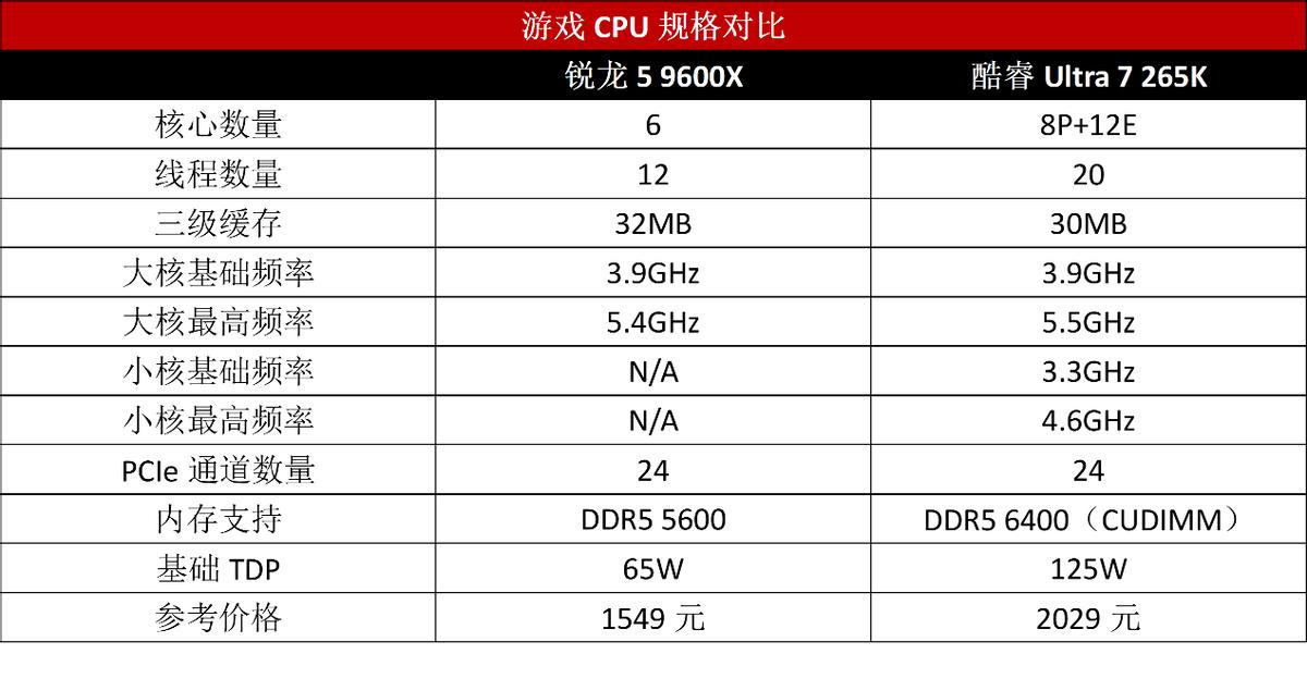 锐龙5 9600X的表现很好地诠释了玩游戏不是核心越多就越好的观点,其6个全大核的配置在高效架构、较高频率、更大三级缓存以及更低内存延迟的加持下,综合表现胜过20核酷睿Ultra 7 265K的7%,具备更强的游戏性能。