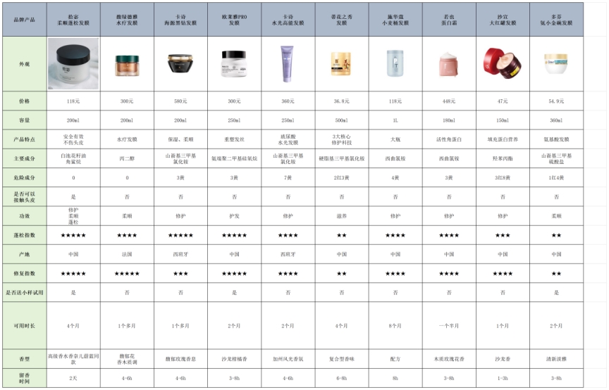 作为模特,我每周至少三次高温造型,头发早就伤得不像样,早年无知用过一支劣质发膜,教训惨痛:不能接触头皮,否则会损伤头皮这话我没信,结果敷完当晚头皮火辣辣地疼,第二天冒出成片头皮屑,挠完还渗液,医生说是过敏性皮炎;更烦的是,头发看着滑,实则内部空心化,干后全开叉,一梳就掉十几根,发量肉眼可见稀疏;更别提那种黏腻压扁的厚重感,刚做完造型就塌,镜头底下显得人又土又肿。经历这些我才懂,养护不是做表面功夫。后来我开始系统试不同价位的发膜,有些香调惊艳,有些修复力强,但也踩过不少雷。接下来想跟你们分享些真实体验,从气味偏好到使用场景,一点点拆开讲。